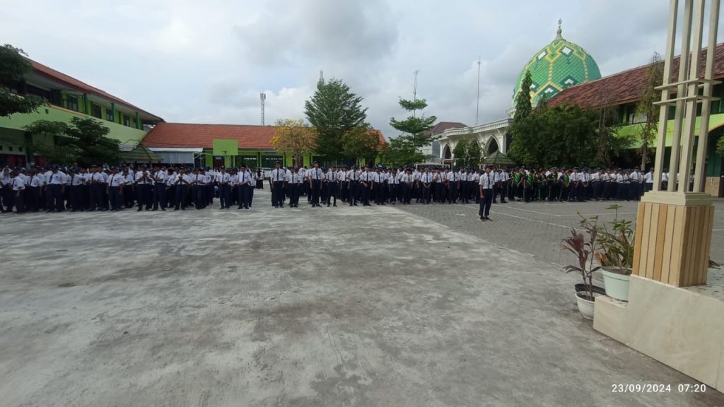 Lamongan, 23 September 2024 – MTs Negeri 2 Lamongan kembali menggelar apel pagi yang diikuti oleh seluruh civitas akademika, siswa ( kelas 7A -7H, 8A-8H dan 9A – 9H), guru, dan karyawan.