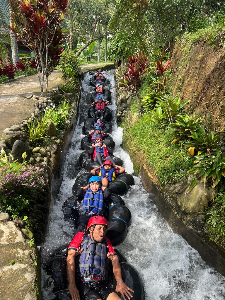 Setelah sesi fun games berlangsung setelah dzuhur hingga pukul empat belas yang memacu adrenalin, sebagian peserta yang berani memilih untuk menjajal sensasi tubing di aliran sungai Segoro Ijo. Dengan peralatan lengkap dan pengawasan ketat dari tim pemandu Soetama , mereka menaklukkan arus sungai yang menantang sambil menikmati pemandangan alam yang memesona. Pengalaman ini tak hanya menguji keberanian, tetapi juga mempererat ikatan antar peserta yang saling membantu dan menyemangati di tengah derasnya arus.