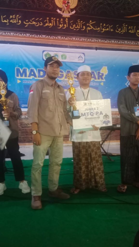 Ananda Gita Nirwana dari Kelas 8A memperoleh juara 1cabang lomba MTQ Putri, Ananda M.Wisnu Muzaki Dari kelas 9B memperoleh Juara 3 Cabang Lomba MTQ Putra, dan Ananda M.sadad Al Wafa memperoleh Juara Harapan 2 Cabang Lomba Story Telling. “Sungguh sangat luar biasa sekali prestasi yang telah diraih oleh siswa siswi MTsN 2 Lamongan, prestasi yang telah diraih ini tidak lepas dari jerih payah dari para pembina sekaligus pelatih dan Madrasah sangat mengapresiasi prestasi yang membanggakan ini. Semoga Prestasi ini menjadi berkah untuk madrasah dan akan terus meningkat”, ungkap Bapak Asman,S.Ag.,M.Pd selaku Kepala Madrasah