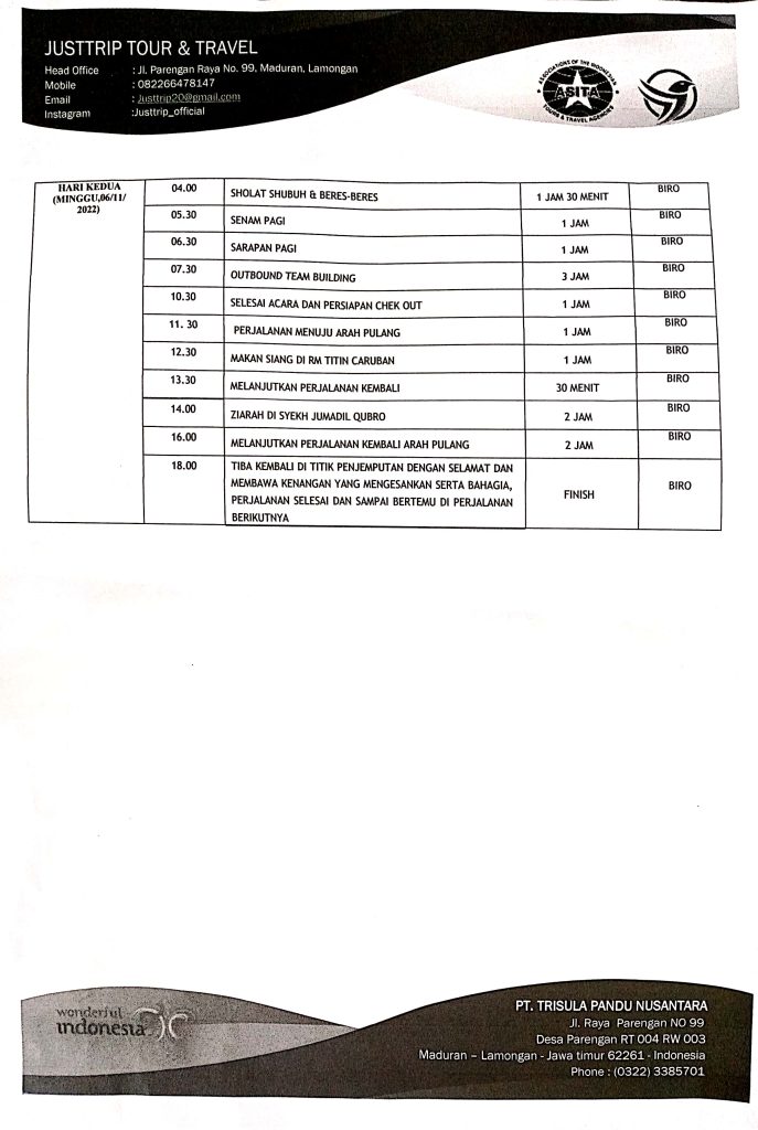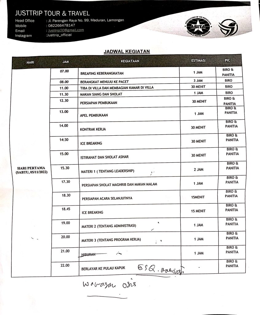 Jadwal Kegiatan adalah sebagai berikut :
