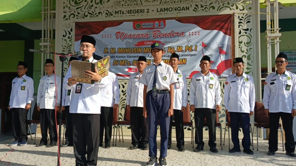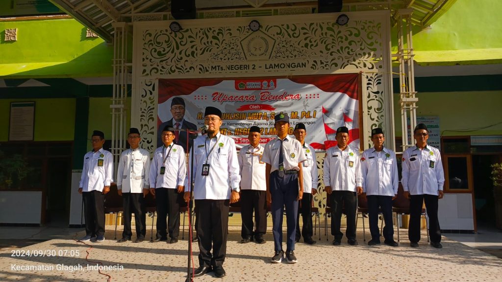 Lamongan, 30 September 2024 – Madrasah Tsanawiyah Negeri (MTsN) 2 Lamongan kembali menggelar upacara bendera rutin di halaman Madrasah. Upacara yang berlangsung khidmat ini menjadi momen penting bagi seluruh civitas akademika MTsN 2 Lamongan untuk menanamkan nilai-nilai nasionalisme dan kebangsaan.