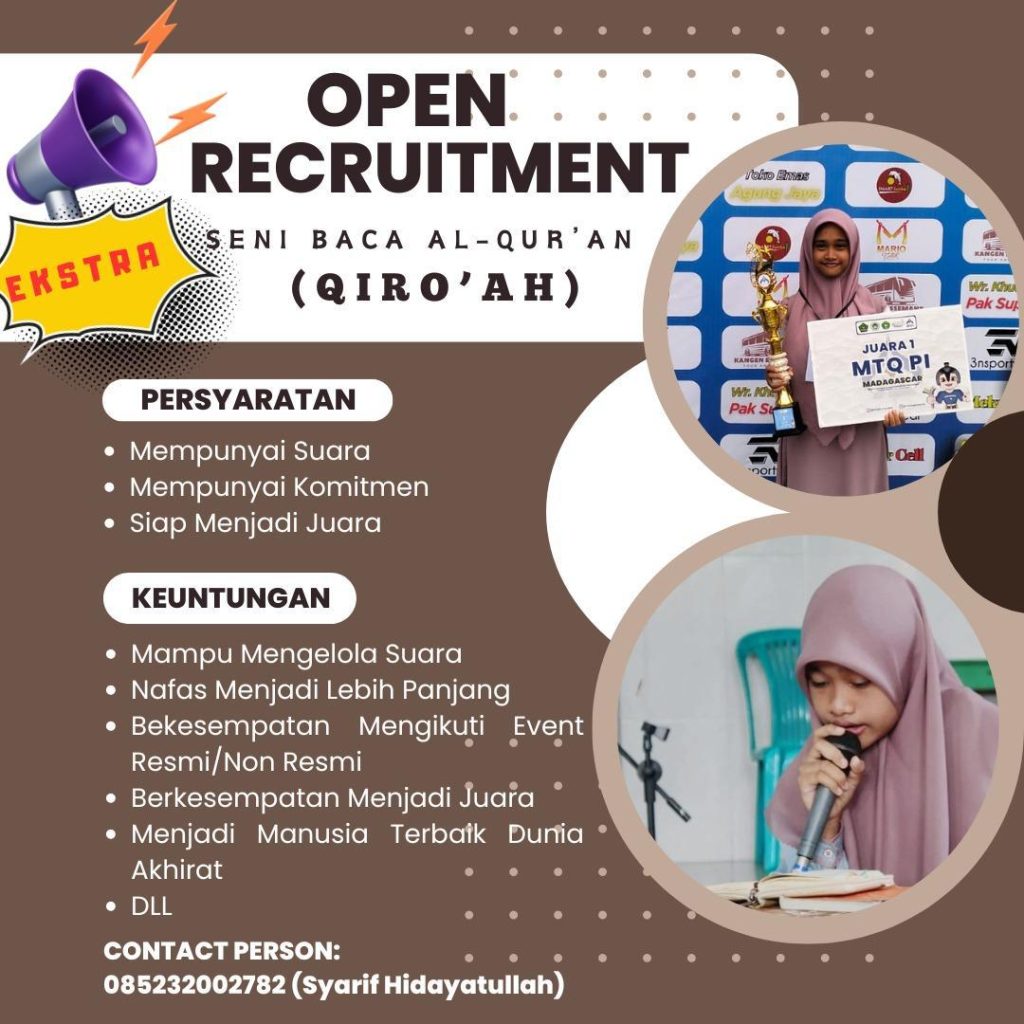Kami mengundang kalian untuk bergabung dengan berbagai kegiatan ekstrakurikuler yang seru dan bermanfaat di madrasah kita. Ekstrakurikuler adalah wadah yang tepat untuk mengembangkan bakat, minat, serta kemampuan kalian di luar jam pelajaran.