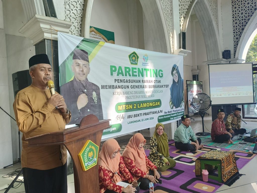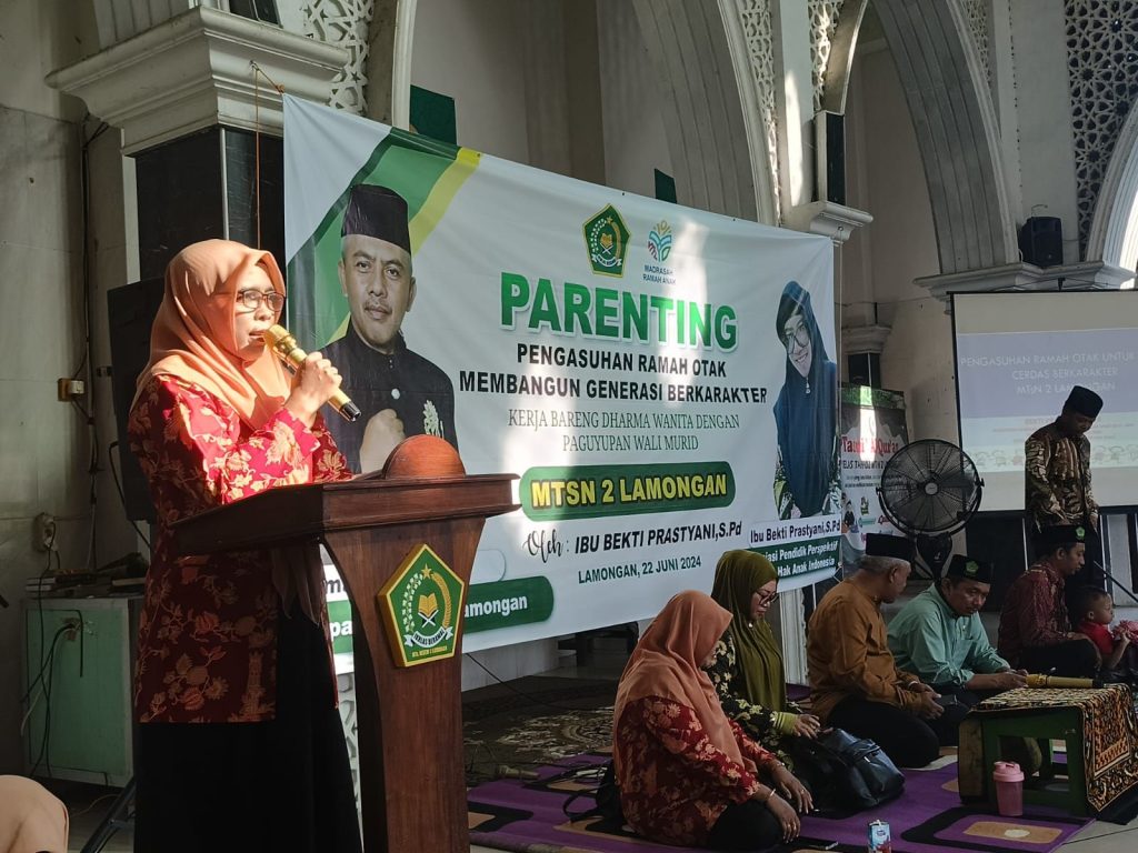 Kepala MTsN 2 Lamongan, Bapak Asman,S.Ag.,M.Pd dalam sambutannya menyatakan rasa terima kasih yang mendalam kepada Ibu Bekti Prastyani atas kesediaannya berbagi ilmu dan pengalaman. “Parenting ini sangat relevan dengan visi kami untuk mendidik siswa tidak hanya dari sisi akademis tetapi juga karakter. Kami yakin dengan pengasuhan yang tepat, generasi muda kita akan menjadi pribadi yang unggul dan berintegritas,” ungkap Bapak Asman.