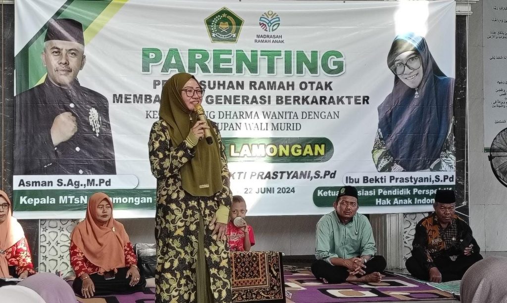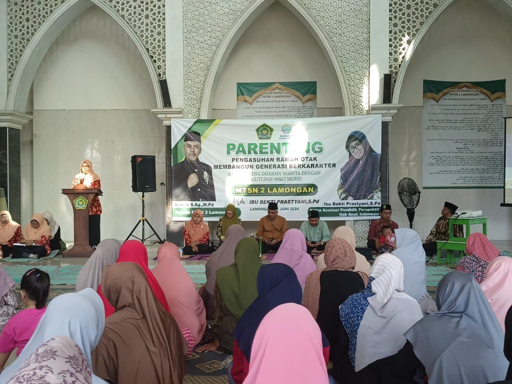 Lamongan, 22 Juni 2024 – Madrasah Tsanawiyah Negeri (MTsN) 2 Lamongan kembali mengukuhkan komitmennya terhadap pendidikan holistik dengan menggelar parenting bertajuk “Pengasuhan Ramah Otak untuk Generasi Berkarakter MTsN 2 Lamongan”. Acara yang berlangsung pada Sabtu pagi ini bertempat di masjid Nurul Ilmi MTsN 2 Lamongan dipandu oleh pakar pendidikan dan pengasuhan anak, Ibu Bekti Prastyani, dan dihadiri oleh ratusan Paguyuban Orang Tua Siswa, Dharma Wanita, guru, serta staf sekolah. Acara ini bersamaan dengan acara pembagian rapor kelas 7 dan 8.