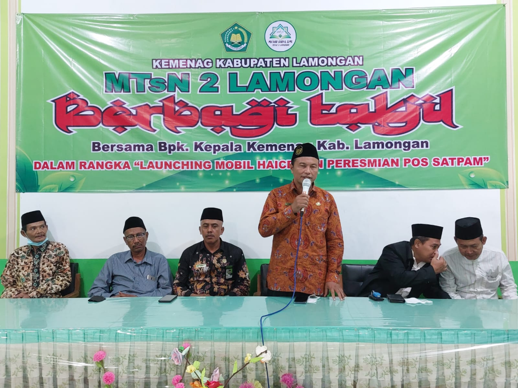 Dalam acara seremonial dan pembinaan guru serta pegawai MTs Negeri 2 Lamongan, Bapak Kepala Kankemenag Kabupaten Lamongan (H. Fausi) menyampaikan bahwa beliau merasa bangga dan mengapresiasi pada kegiatan di MTs Negeri 2 Lamongan hari ini, mulai dari pembagian takjil sampai peresmian pos satpam dan launching mobil madrasah, buka bersama.