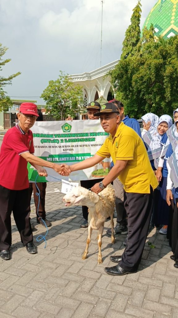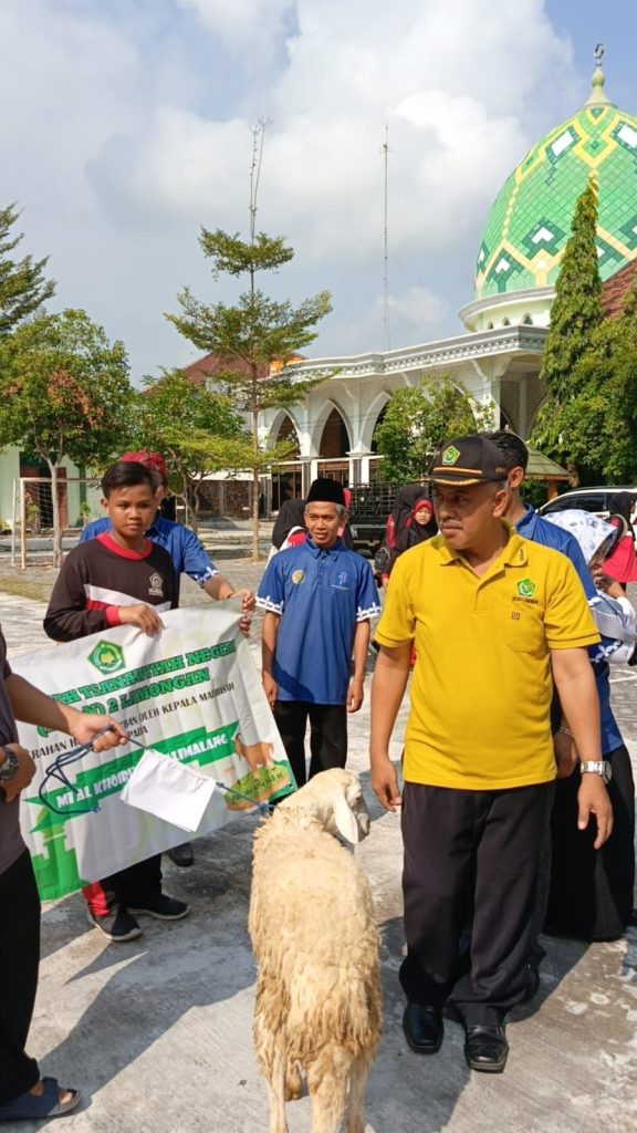 Lamongan, 15 Juni 2024 – Dalam semangat merayakan Hari Raya Idul Adha 1445H, MTsN 2 Lamongan melaksanakan kegiatan peduli berbagi dengan cara yang unik dan bermakna. Seperti tahun lalu, pada Tahun ini, madrasah mengadakan program berbagi hewan kurban/kambaing yang masih hidup kepada beberapa Sekolah Dasar (SD) dan Madrasah Ibtidaiyah (MI) di sekitar wilayah Kecamatan Glagah.