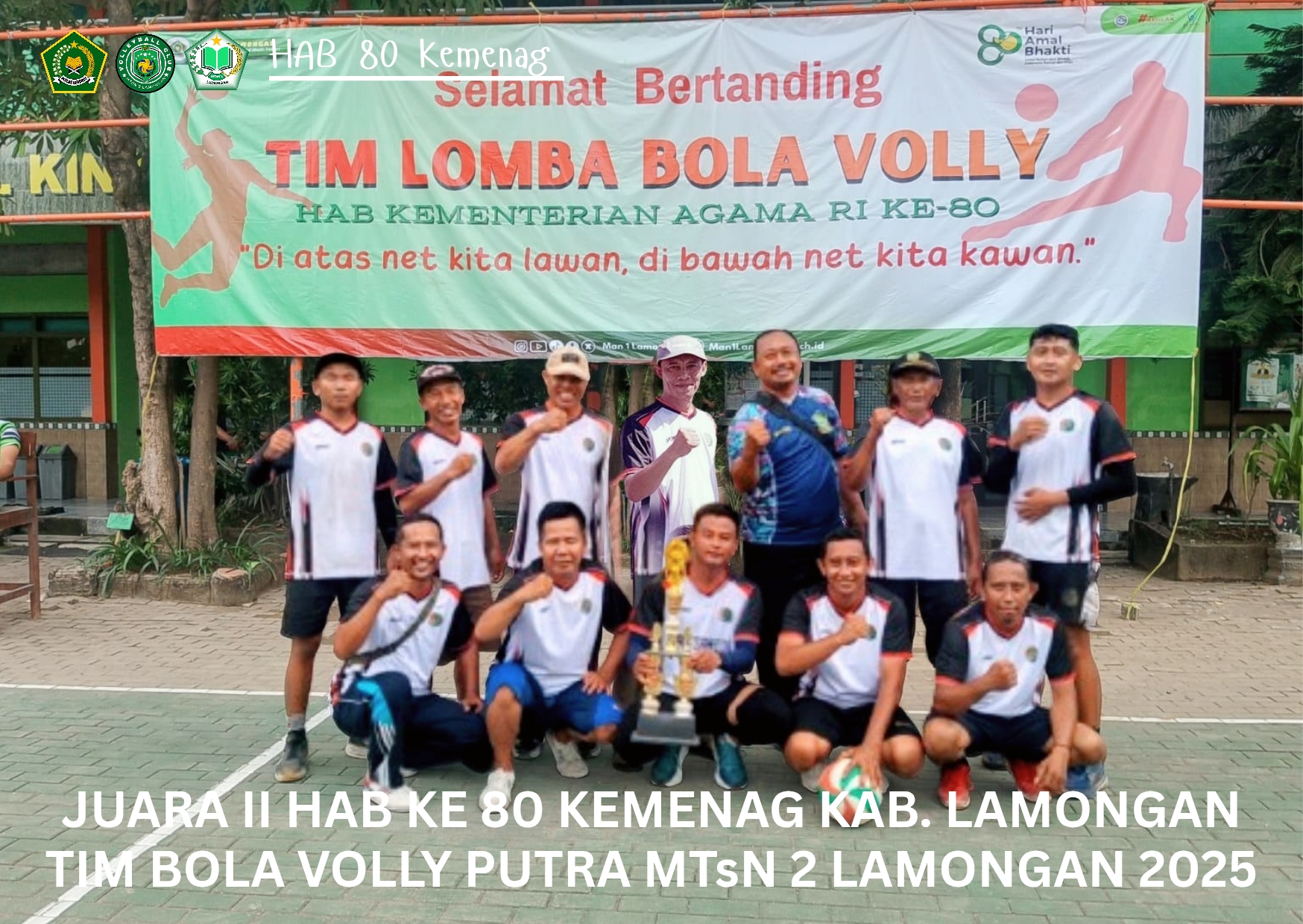Pada Selasa, 30/12/2025 Tim Volli putra MTsN 2 Lamongan, terus melaju ke babak berikutnya dan mampu mengalahkan tim tangguh MAN 1 Lamongan. Ketika berita ini diluncurkan Tim MTsN 2 Lamongan masuk final memperebutkan juara 1 & 2 melawan Tim Wilker Paciran serta meraih Juara II di Lomba HAB 80 Kemenag Kab. Lamongan.