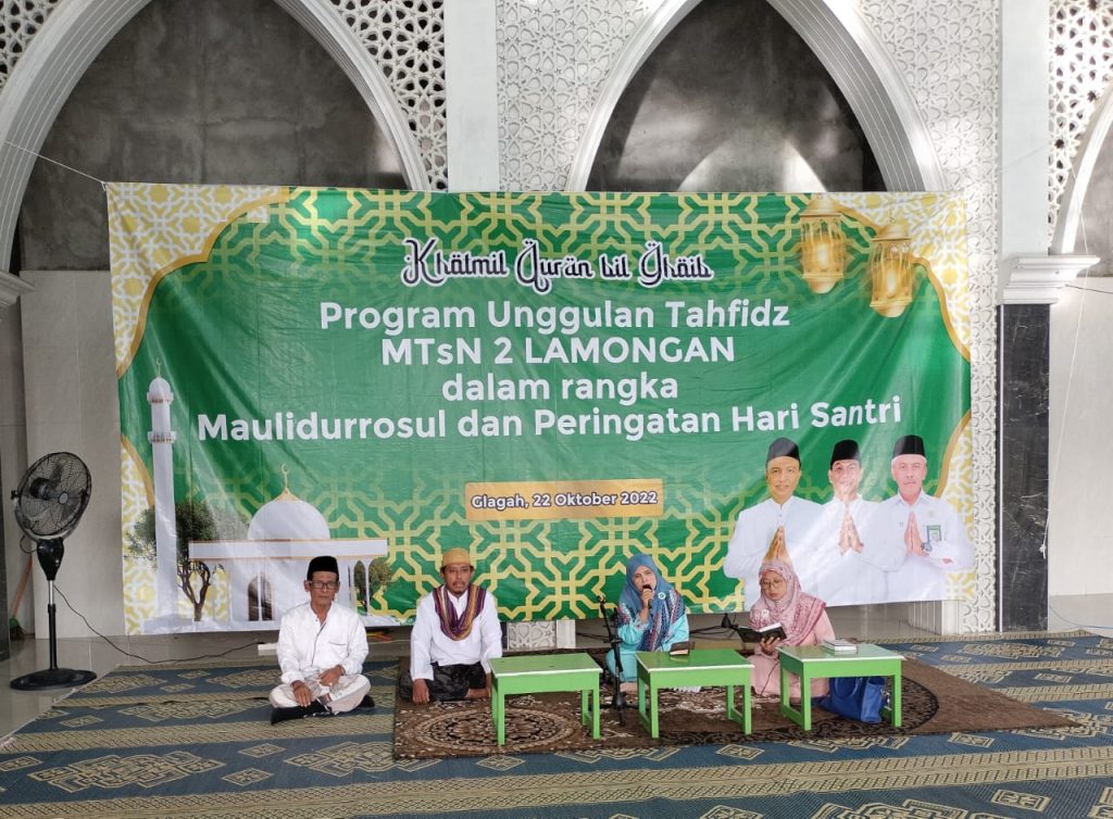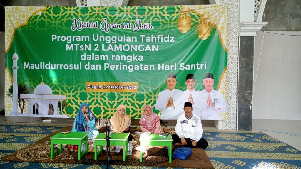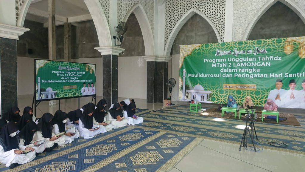 Lamongan, 22/10/2022 – Suasana berbeda terlihat pada kegiatan Hari Santri Nasional MTsN 2 Lamongan. Sejak pagi jam 6.00 Wib. Dimulai dengan Khotmil Qur’an Bil Ghoib oleh siswa-siswi program unggulan, siswa-suswi lainnya mengikuti