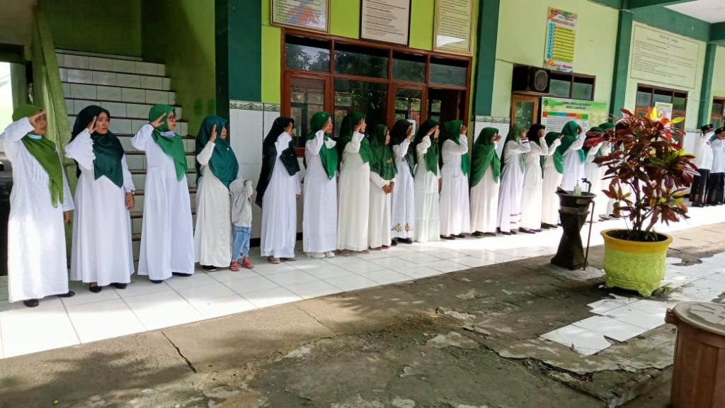 upacara bendera yang tepat hari Sabtu 22 Oktober 2022, biasanya siswa-siswi menggunakan seragam pramuka dan Bapak Ibu guru/pegawai juga menggunakan seragam pramuka, pada hari ini semua berbusana ala santri, yang sudah dilakukan selama 1 minggu.