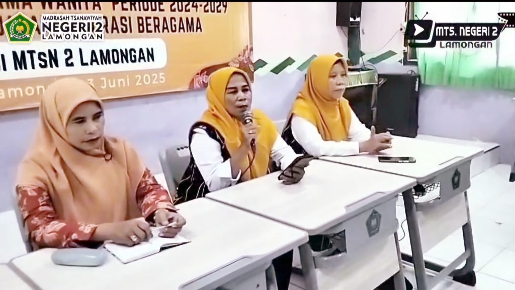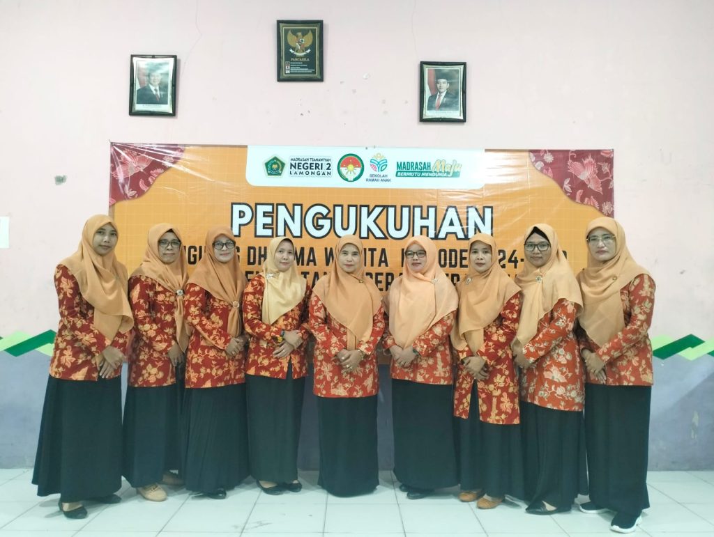 Pengukuhan pengurus Dharma Wanita Persatuan (DWP) MTsN 2 Lamongan untuk masa bakti 2024-2029. Pengukuhan ini juga disertai dengan penekanan pada pentingnya moderasi beragama dan pemberdayaan perempuan (3/6/2025).