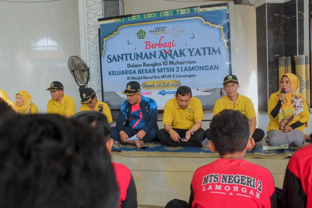 MTsN 2 LAMONGAN berikan Santunan dan Usap Kepala 48 Anak Yatim di Tanggal 10 Muharrom 1445 H yang dipusatkan di Masjid MTsN Bersama Para Dewan Guru dan Para Donatur.