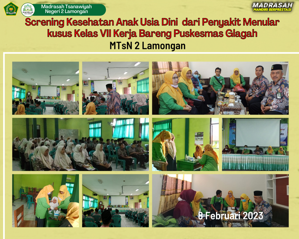 Lamongan, 8 Februari 2023 MTsN 2 Lamongan mengadakan dua kegiatan tambahan sekaligus yaitu Expo Studi Lanjut bagi siswa kelas 9 dan Penyuluhan Kesehatan dari Puskesmas Kecamatan Glagah.