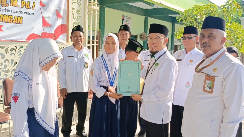 Semoga ke depan MTs Negeri 2 Lamongan semakin berprestasi, bermutu dan mendunia ujarnya selesai menyerahkan Piala dan sertfikat penghargaan.