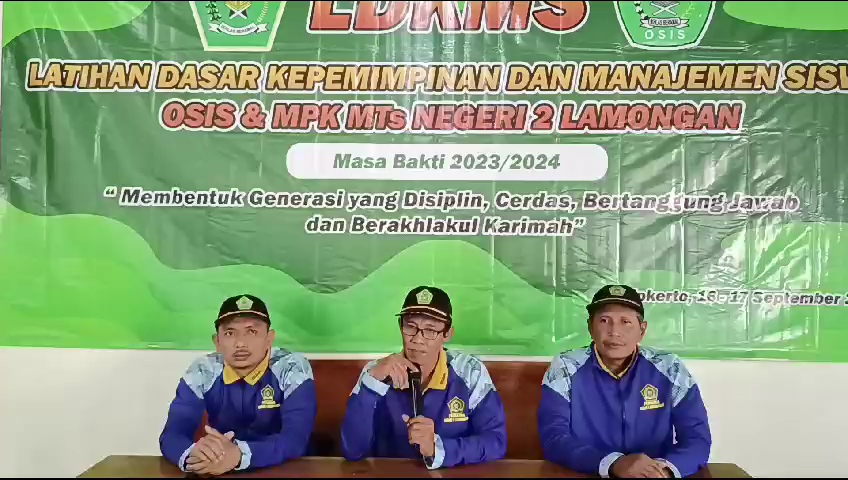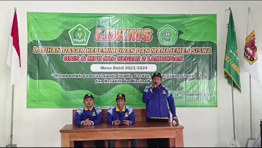 Latihan Dasar Kepemimpinan Dan Manajemen Siswa (LDKMS) adalah sebuah bentuk kegiatan untuk meningkatkan sumber daya siswa guna mendalami dan memahami tentang konsep dasar sebuah organisasi. Kepala Tata Usaha madrasah (Miftakhuddin) yang mewakili Kepala madrasah (Asman), berharap peserta LDKMS dapat menjadikan MPK dan OSIS yang baik dan disiplin. Selain itu, diharapkan muncul kader-kader organisasi yang memiliki mental kepemimpinan yang berkualitas tanpa mengesampingkan nilai-nilai keagamaan. Maka dari itu, LDKMS dilaksanakan oleh bidang keorganisasian MTsN 2 Lamongan, Sabtu (16/09/2023).