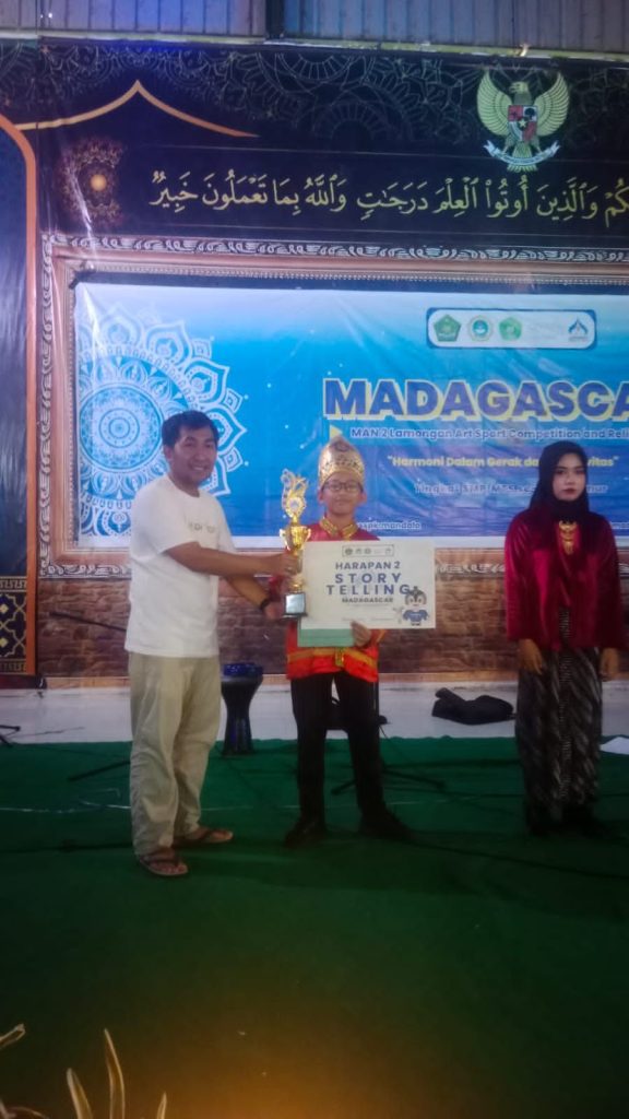 Siswa – siswi MTsN 2 Lamongan adalah anak – anak yang hebat dan memiliki banyak potensi, prestasi yang diraih pun tidak main – main. Setelah berhasil mendapatkan juara 1 pada turnamen Bola Volly Tingkat Jawa Timur Tanggal 26-27 Januari 2024, prestasi membanggakan sebagai juara umum kembali diraih dalam bidang seni. Prestasi bidang seni yang di raih pada cabang Seni MTQ dan Story Telling di event Lomba Madagaskar IV MAN 2 Lamongan tanggal 28 Januari 2024.