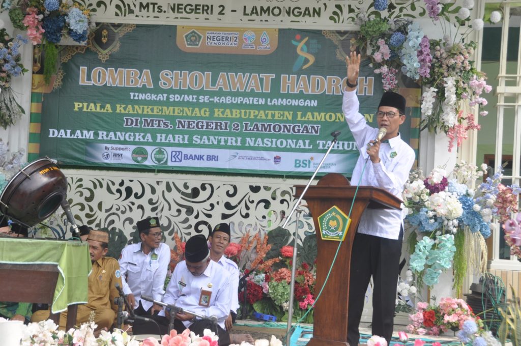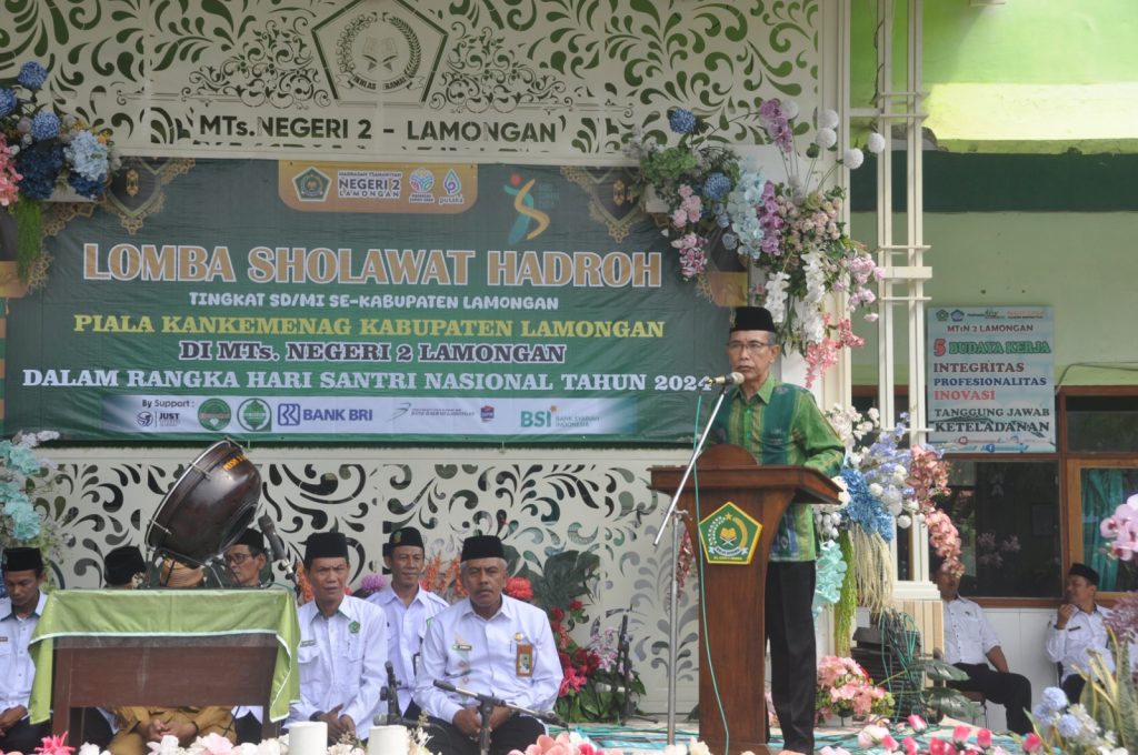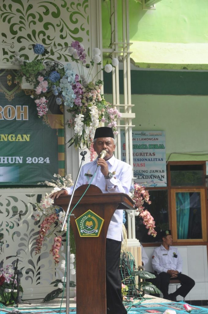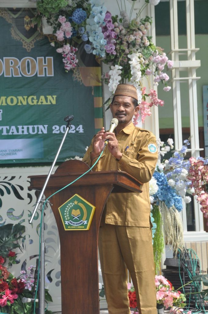 Bapak Asman, S.Ag,.M.Pd dalam sambutan menyampaikan kegiatan ini dikuti oleh sebanyak 31 peserta dari SD/MI di Kabupaten Lamongan. Sehari sebelum pelaksanaan lomba banjari MTs Negeri 2 Lamongan kerja bereng MWC NU Glagah mengelar lomba gerak jalan yang diikuti oleh MI/SD sekecamatan Glagah dengan start dari halaman MTs Negeri 2 Lamongan finish di Lampongan Lonjong Glagah. Bapak Asman menyampaikan Insya’allah di Tahun Pelajaran 2025/2026 akan membuka kelas Unggulan yaitu 1 kelas IT (Digital) dan 1 kelas Tahfidz berasrama di Ma’had Darul Ilmi dengan pembina Tahfidz Qur’an serta Ekstra Unggulan Robotik dan Baca Kitab Kuning. mohon do’a restu begitu ucapnya mengakhiri sambutannya.