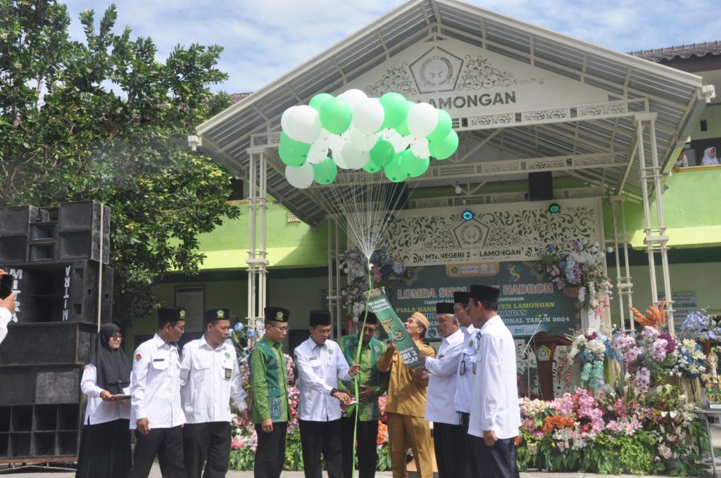 Di akhir sambuatannya dia berharap kegiatan ini menjadi tradisi rutin tiap tahun karena banyak manfaatnya. Dan semoga ke depan MTs Negeri 2 Lamongan semakin maju, berprestasi dan mendunia ujar pak Anam. Usai sambutan Bapak Kasubag, diikuti pak Camat, Kepala Madrasah dan staf pimpinan melangkah di depan panggung P5RA untuk acara pelepasan balon pertanda acara di buka dan dimulai.
