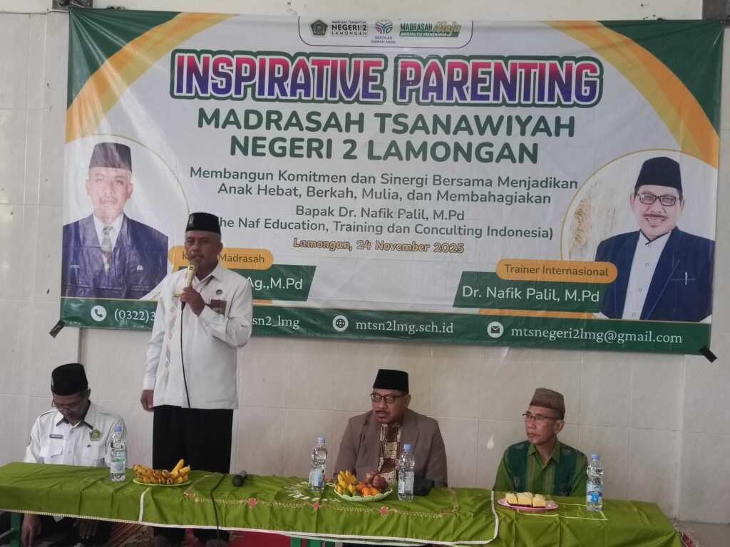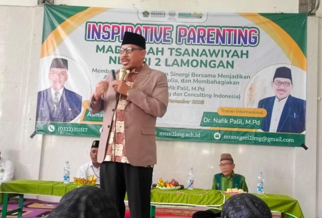 Lamongan, 24 November 2025 – Madrasah Tsanawiyah Negeri (MTsN) 2 Lamongan sukses besar menyelenggarakan program edukatif “Inpirative Parenting” yang berorientasi pada sinergi madrasah dan keluarga. Acara ini menampilkan pembicara terkemuka, Dr. Nafik Palil, M.Pd, seorang Trainer Internasional dari The Naf Education, Training, dan Consulting Indonesia.