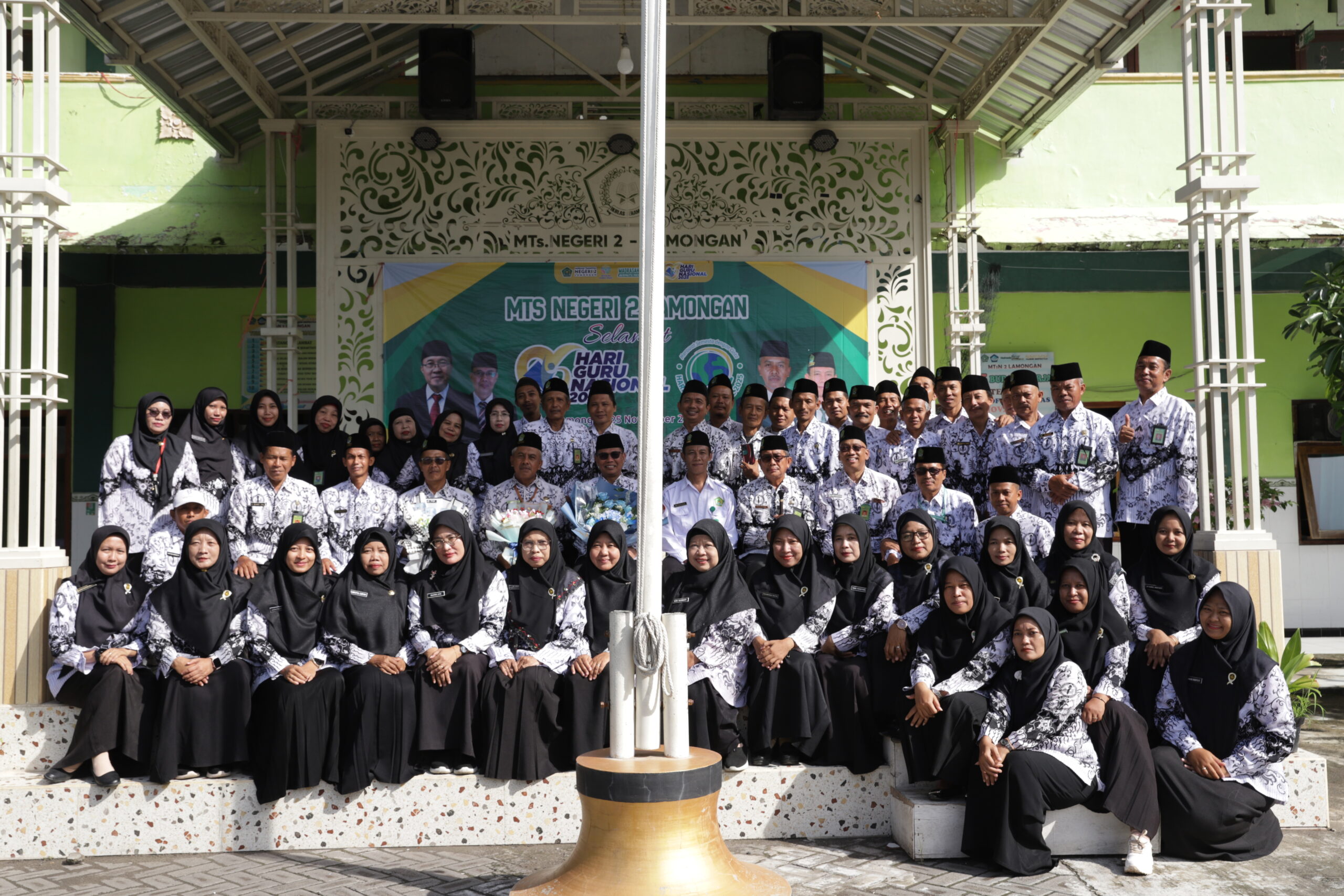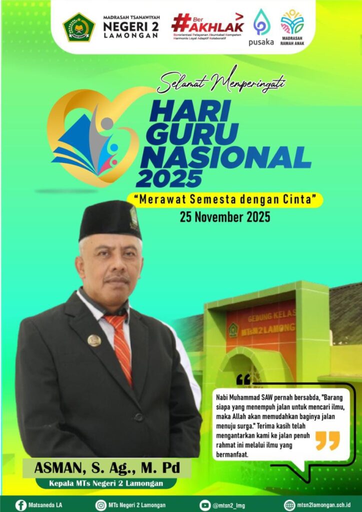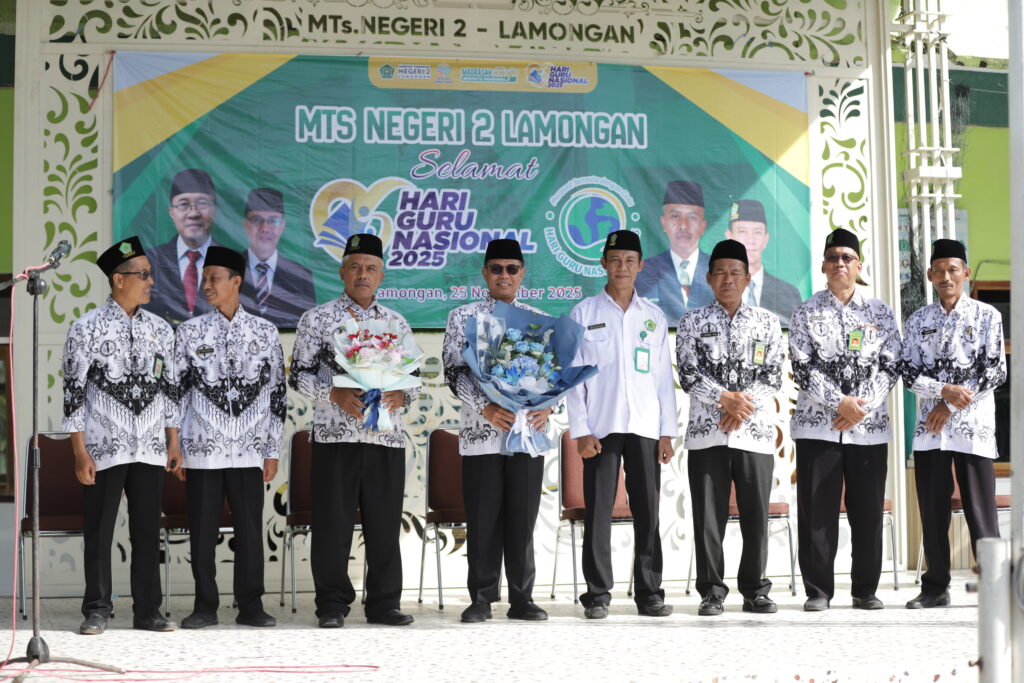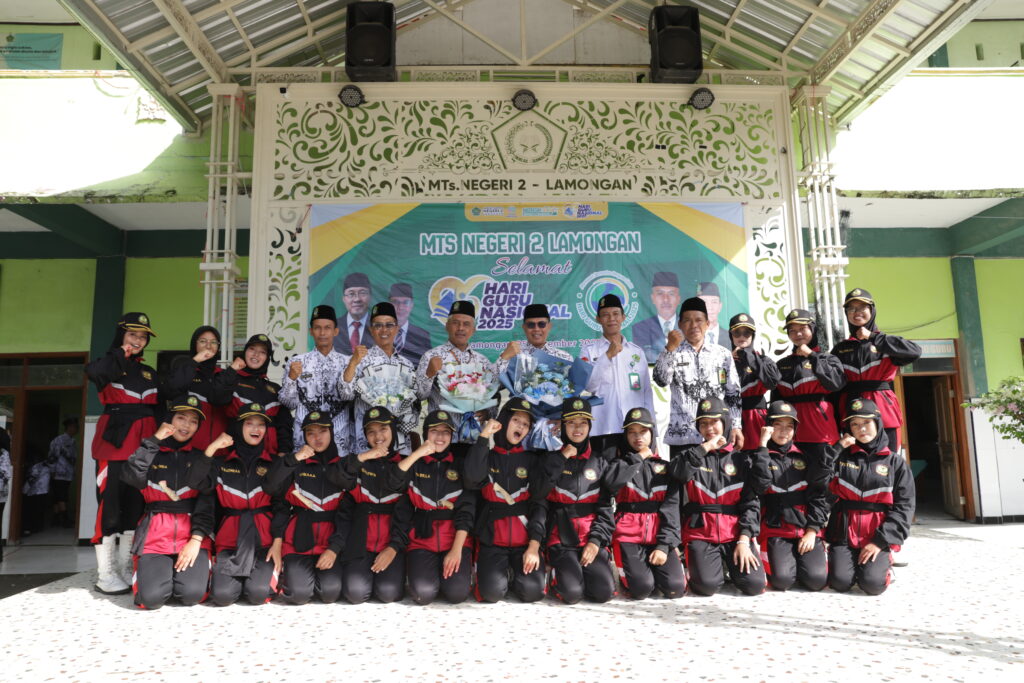 Lamongan, 25 November 2025 – Madrasah Tsanawiyah Negeri (MTsN) 2 Lamongan menggelar upacara bendera khusus dalam rangka memperingati Hari Guru Nasional (HGN) tahun 2025 pada hari Selasa, 25 November 2025. Acara yang berlangsung meriah namun khidmat di halaman Madrasah ini dihadiri oleh seluruh elemen Madrasah, mulai dari siswa kelas 7 hingga 9, para guru, dan pegawai Madrasah.