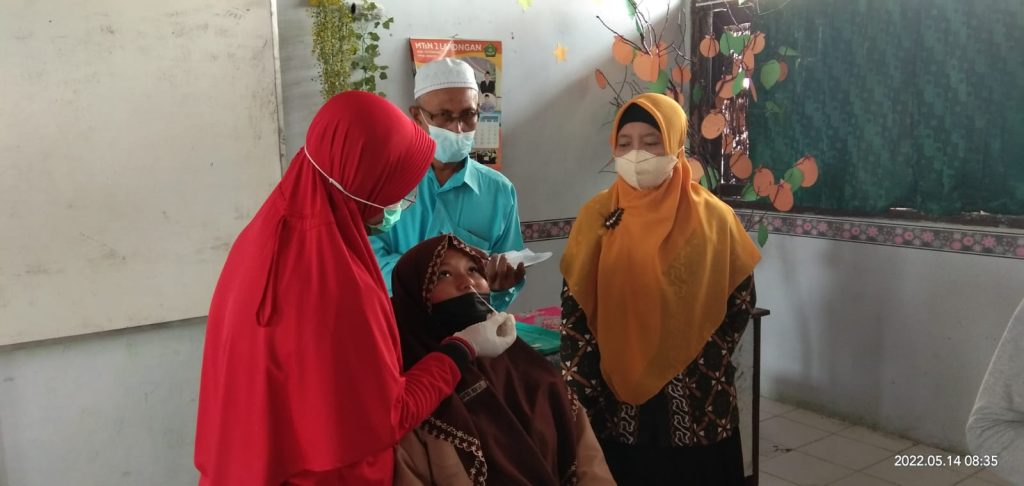 Pengambilan sampel swab ini dilaksanakan sebagai salah satu syarat sekolah untuk tetap melaksanakan PTM dan program Bupati Kab. Lamongan.