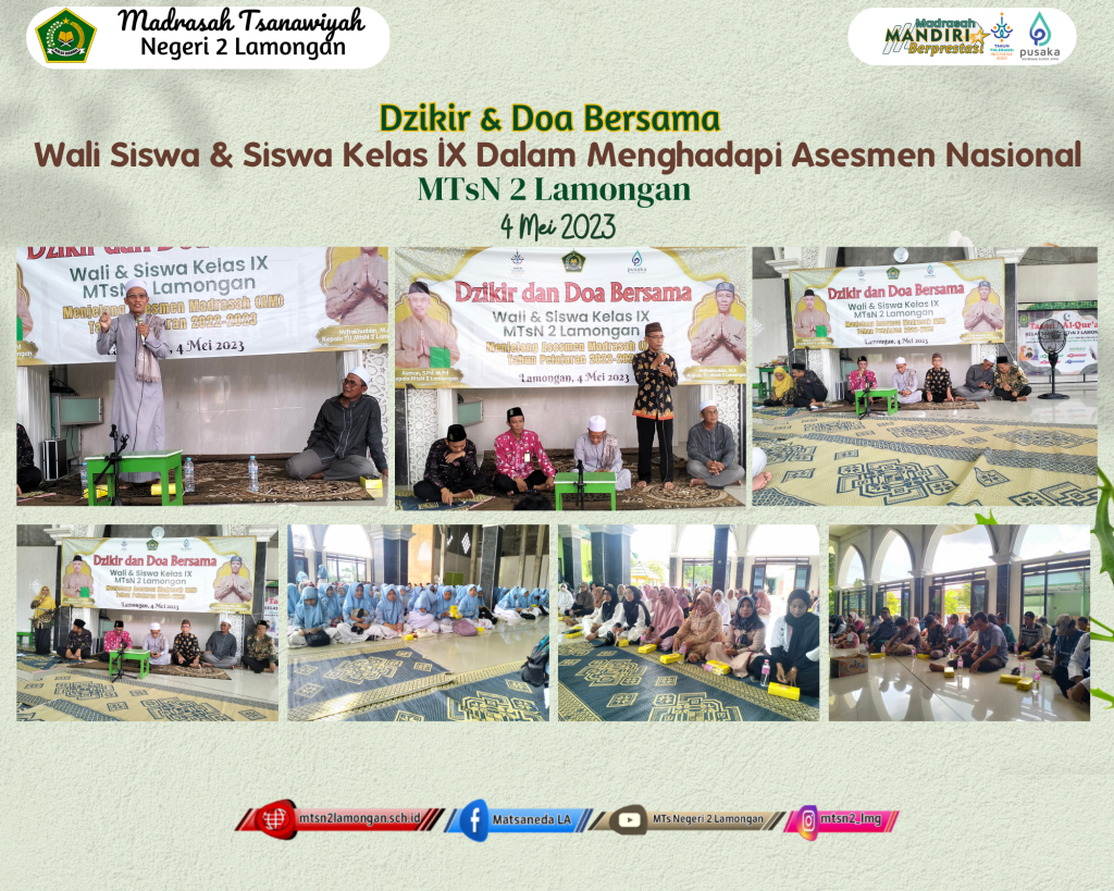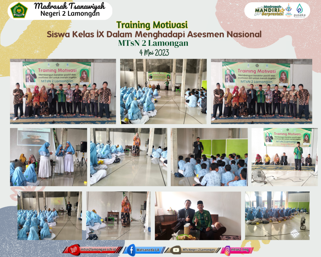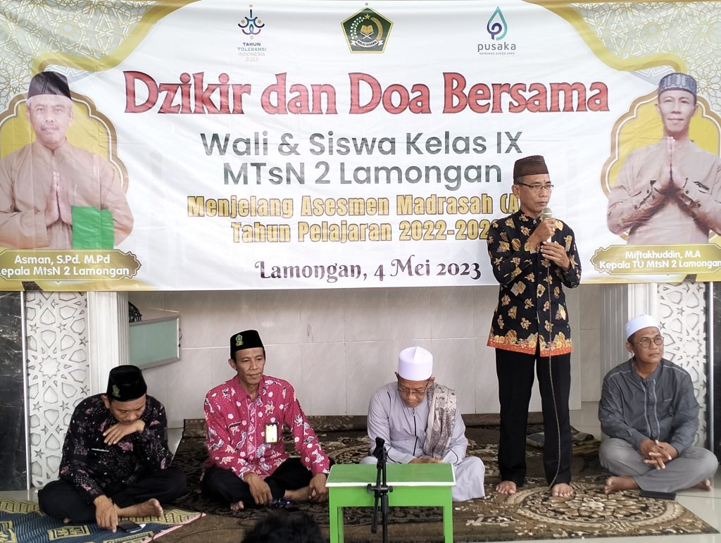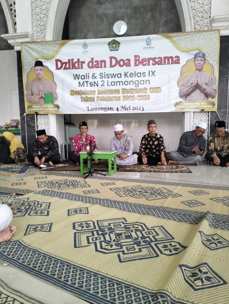 Dalam rangka akan menghadapi Asesmen Madrasah tahun ajaran 2022/2023 MTsN 2 Lamongan mengadakan Training motivasi serta doa dan dzikir bersama. Acara ini diikuti oleh Wali siswa dan siswa kelas IX yang diadakan di Masjid Nurul Ilmi MTsN 2 Lamongan.