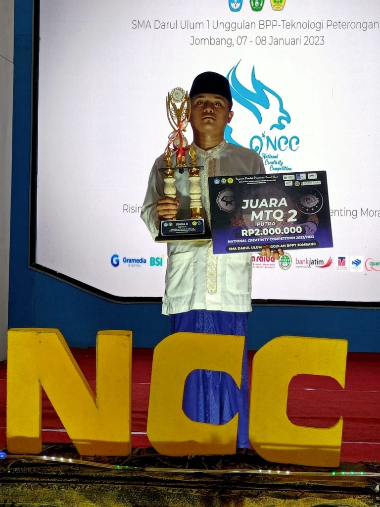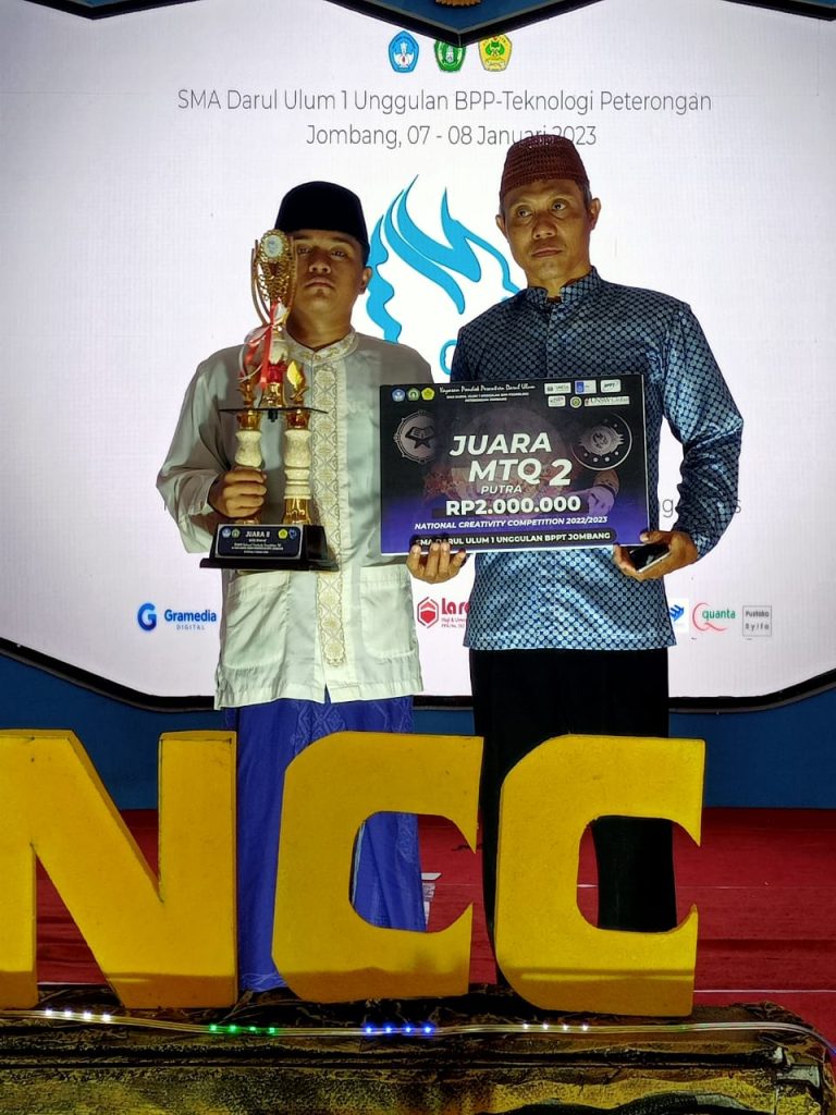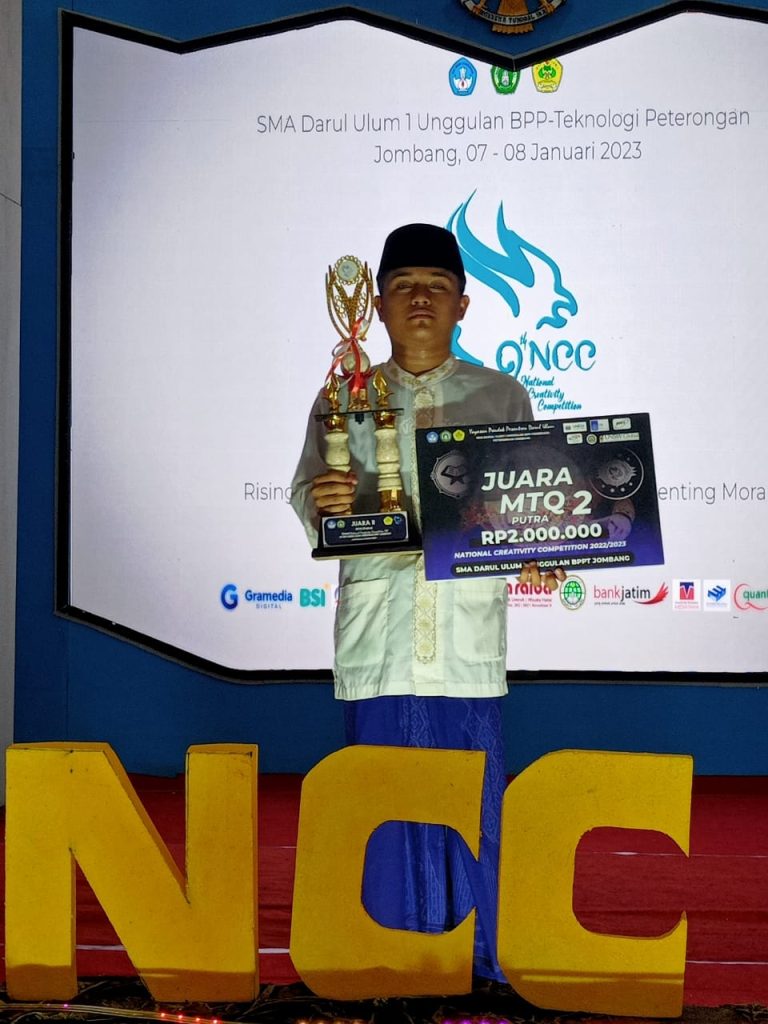 Minggu, 8 Januari 2023 MTsN 2 Lamongan kembali meraih prestasi membanggakan sebagai Juara 2 Lomba MTQ tingkat nasional dalam ajang Lomba NCC yang di selenggarakan oleh SMA Unggulan Darul Ulum Jombang.